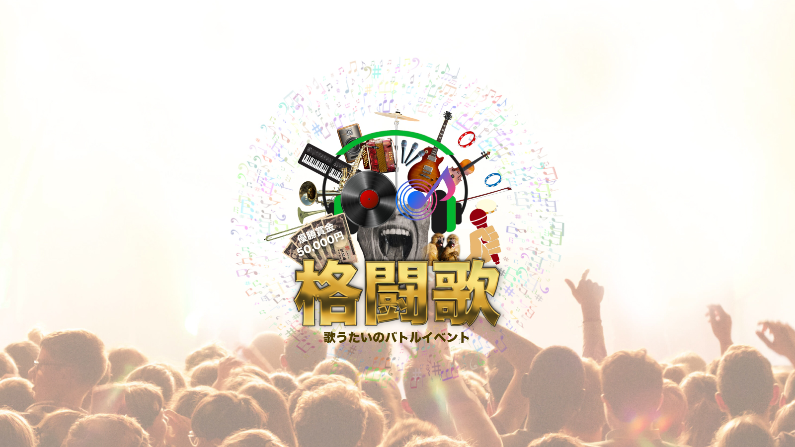 「格闘歌」とは歌い手達がトーナメント形式で戦うバトルイベントです。歌い手は事前に伝えられた課題曲の中から1曲を選び、生バンドをバックに相互に歌唱。歌唱後、選ばれた勝者がトーナメントを進み、チャンピオンは全てを勝ち取ります。